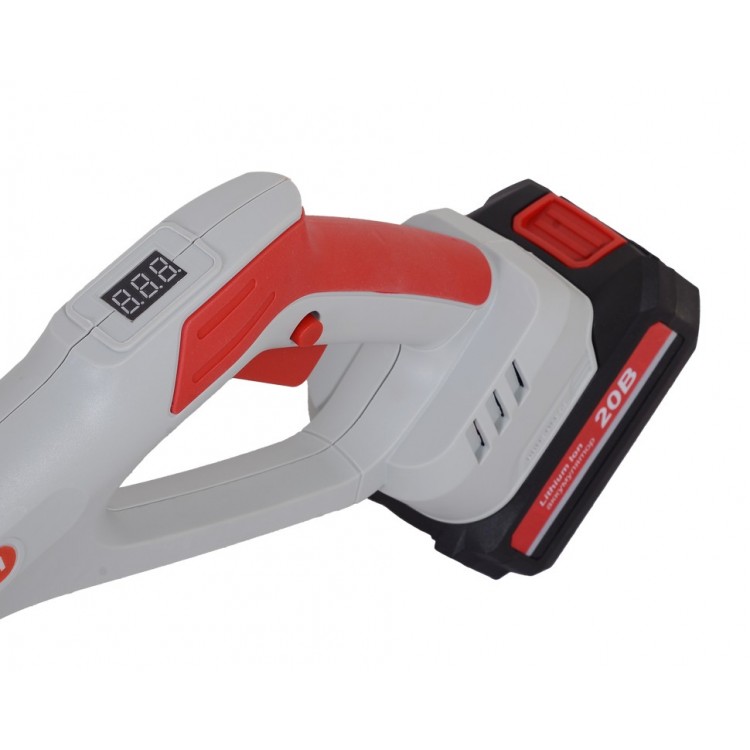 Напряжение аккумулятора в 20 В обеспечивает достаточную мощность для уборки снега. Отсутствие самоходного режима компенсируется бесступенчатой трансмиссией и одной передачей для движения вперёд.