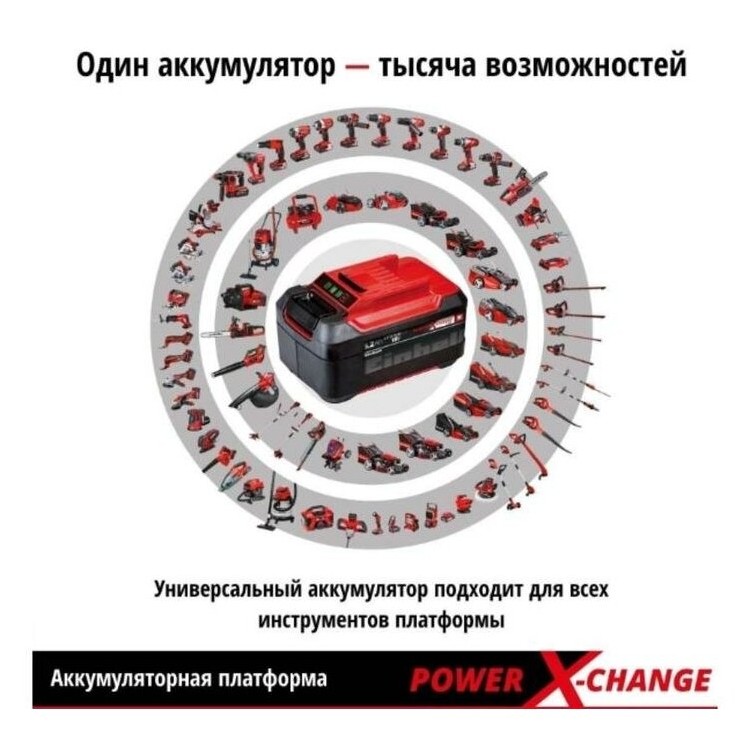 | Особенности | Является представителем семейства Power X-Change, бесщеточный двигатель от Einhell, для работы необходимо 2 аккумулятора, мягкие накладки Softgrip., прочный металлический наконечник на трубе, регулируемая по длине труба (3 ступени), режим «Турбо», электронная регулировка оборотов |