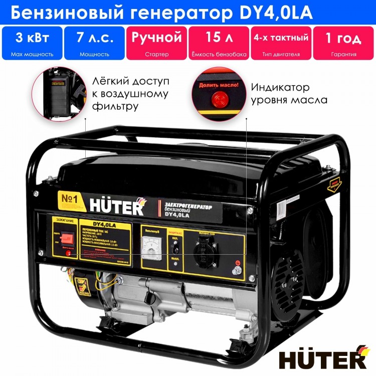 | Название цвета | DY4,0LA Huter (3,0кВт, ручной стартер) |