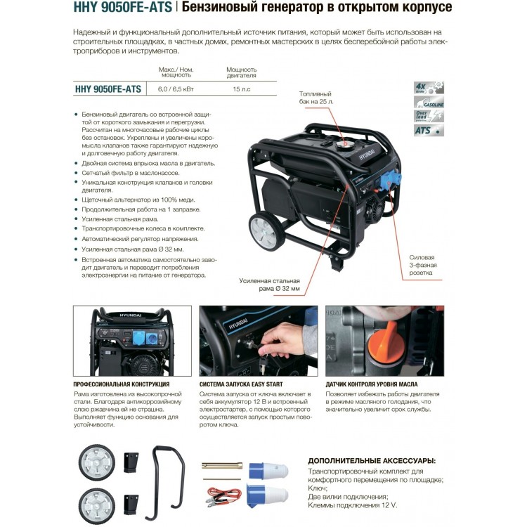 Ищете надёжный и мощный генератор, который обеспечит стабильное электроснабжение в любых условиях? Тогда генератор HYUNDAI HHY 9050FE ATS — именно то, что вам нужно!