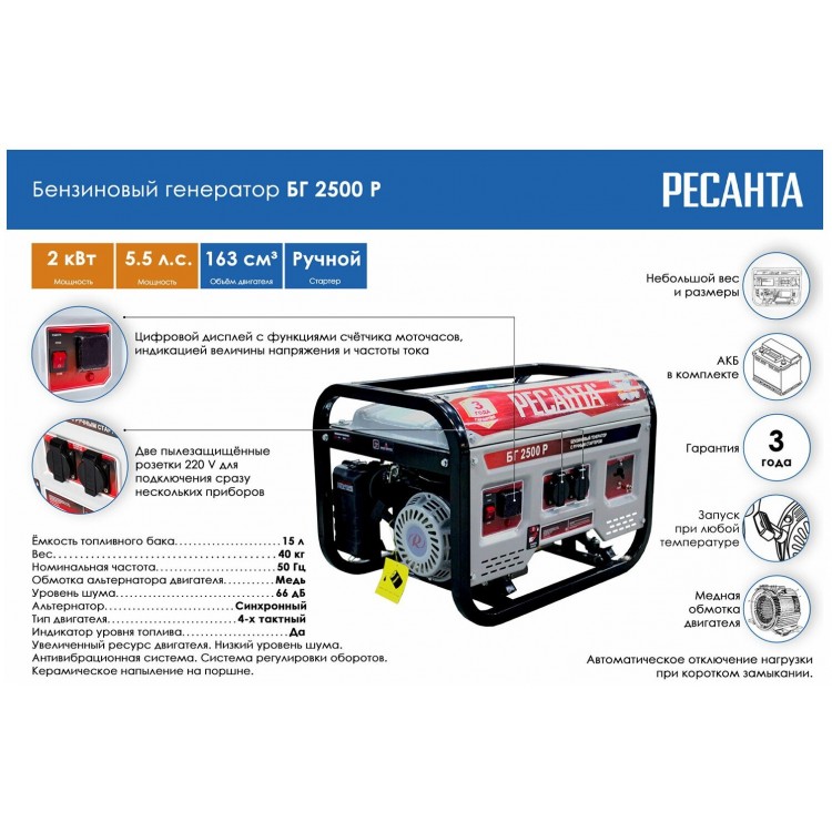 Приобрел себе на пасеку данный генератор. В работе он неприхотлив. Мощности для обеспечения освещения территории вполне хватает. По размерах легче всего переносить вдвоем. Одной заправки хватает стабильно на 8 часов бесперебойной работы. Заводится легко. Своих денег он стоит это точно.