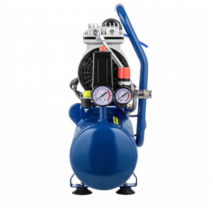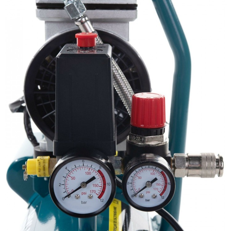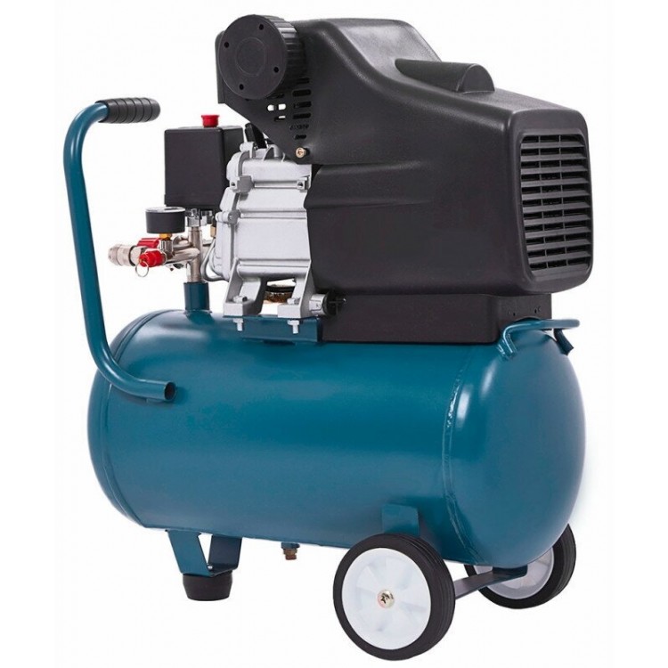 В комплекте с компрессором вы получите воздушный фильтр и транспортировочные колёса. Устройство оснащено защитой от перегрева, манометром, предохранительным клапаном, регулировкой давления и ручкой для переноски.