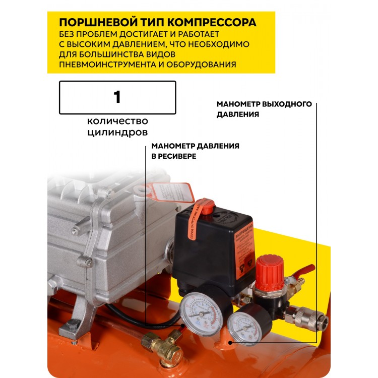 Название Компрессор воздушный, 50л, Вихрь КМП-300/50, 300 л/мин, 8 Бар, 2000 Вт; Бренд ВИХРЬ; Тип Компрессор; Тип компрессора Поршневой; Тип двигателя Электрический; Тип смазки Масляный; Мощность (л.с.) 2.7 л.с; Мощность 2 кВт; Давление 8 бар; Производительность на входе 300 л/мин; Производительность на выходе 185 л/мин; Привод Коаксиальный (прямой); Напряжение 220 В; Уровень шума 80 дБ; Ресивер Горизонтальный; Объем ресивера 50 л; Количество цилиндров компрессора 1; Количество постов 1; Тип соединения Рапид (евро); Тип охлаждения Воздушное; Транспортировка Два колеса; Размеры (ШxГxВ) 32x66.5x65 см; Вес 23.5 кг; Дополнительная информация Кабель питания в комплекте; Гарантийный срок 1 г;