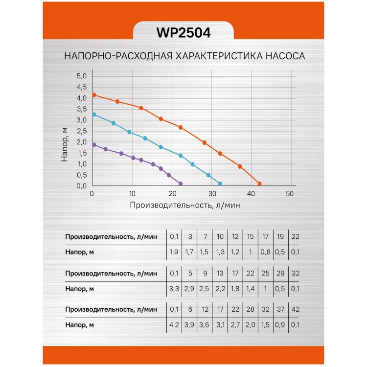 * Максимальный напор: 4,2 метра, что позволит вам перекачивать воду на большие расстояния.