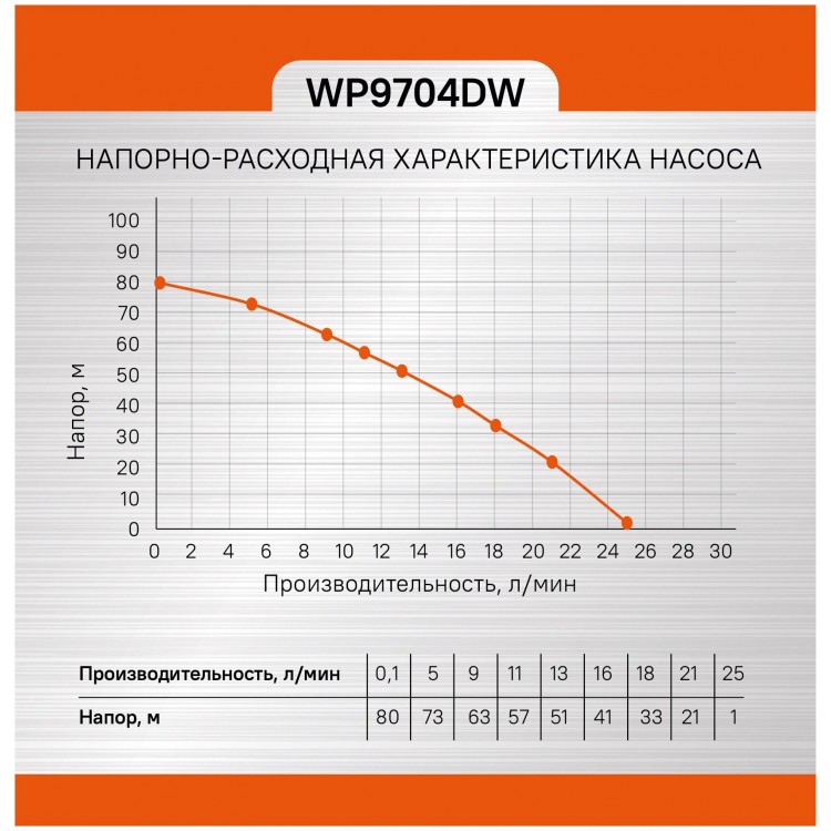 * Максимальный напор до 80 метров — насос справится даже с глубокими скважинами.