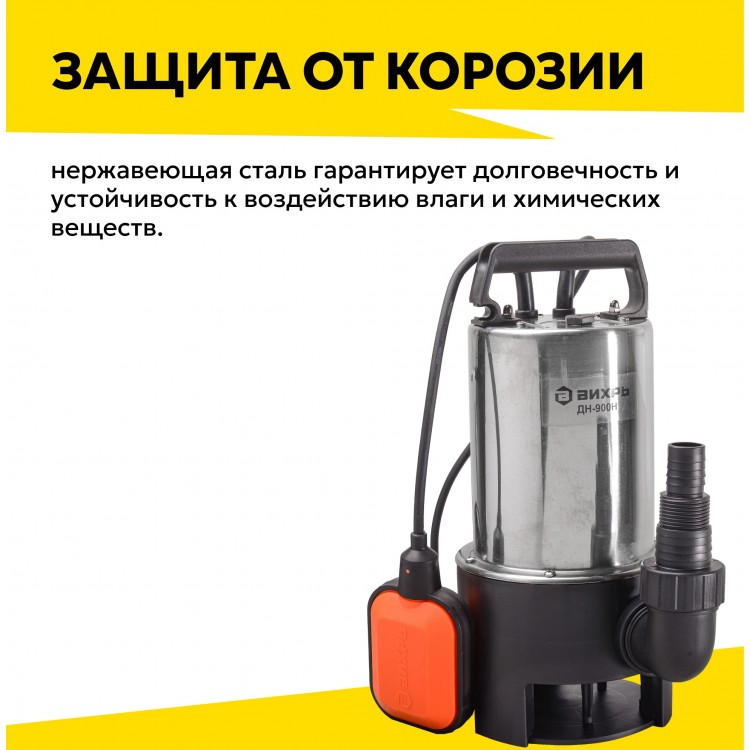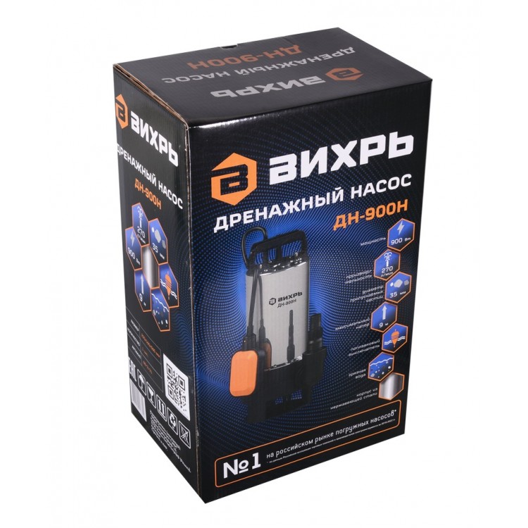 | Название | Дренажный насос Вихрь ДН-900H, 900 Вт, макс. напор – 9 м, 270 л/мин, для грязной воды |