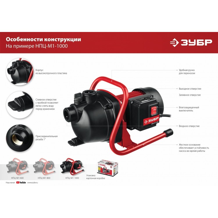 | Название | Поверхностный насос дренажный насос для чистой воды ЗУБР НПЦ-М1-800 (800 Вт) |