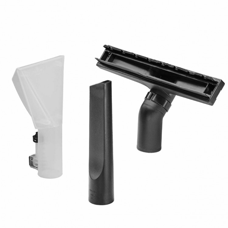 * Комплектация. В комплекте идут насадка для ковра, насадка для мягкой мебели, насадка для пола, удлинительная трубка, фильтр тонкой очистки, шланг, щелевая насадка.
