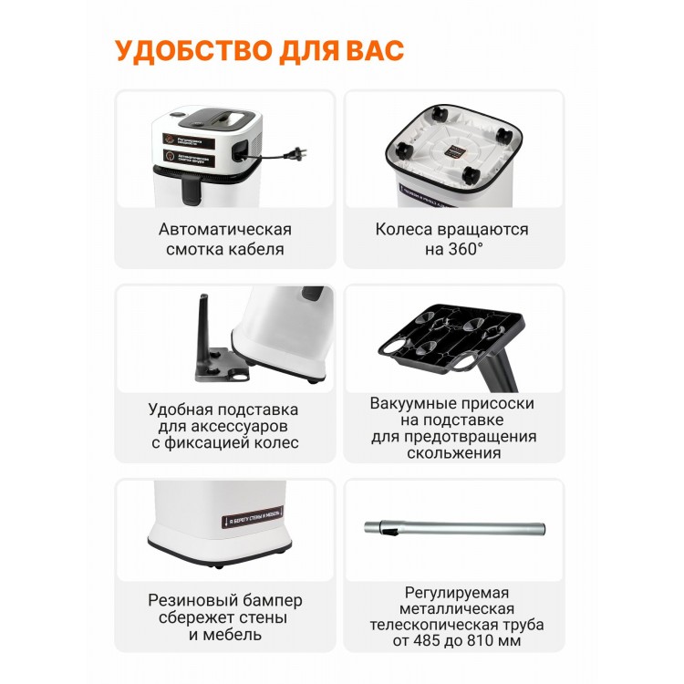 * Мощность 1000 Вт и мощность всасывания 400 Вт. Эффективно удаляет даже самые сложные загрязнения.