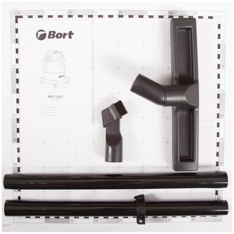 Примитивно устроенная конструкция, никаких хитростей и обслуживания. Насадки крепятся прямо на корпусе - своеобразная гарантия от забывчивости. Колесная база устойчивая, шире самого пылесоса. Мелкий и среднего размера строительный мусор и пыль собирает, потери мощности нет