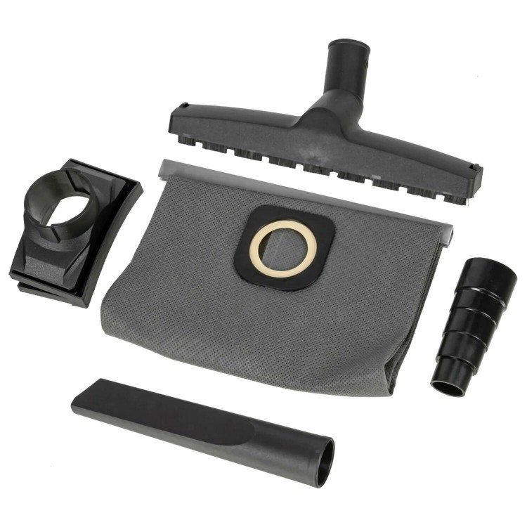 Функция сбора жидкости позволяет использовать пылесос не только для сухой, но и для влажной уборки. В комплекте идёт насадка для пола, щелевая насадка, насадка-переходник для инструмента, а также фильтры и мешки для сбора пыли.