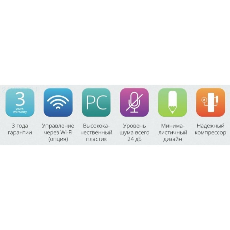 Регулятор скорости вращения вентилятора и диапазон рабочих температур (охлаждение/обогрев): 18–43/–7–24 °C. Опционально доступны фильтры, ионизатор и управление по Wi-Fi.