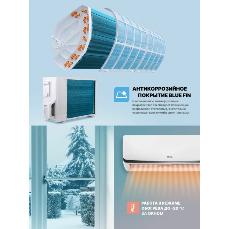 | Особенности | Пульт ДУ, таймер включения/выключения, Автоочистка, Авторестарт, Антикоррозийное покрытие, Диагностика неисправностей, Защита от замерзания, Предотвращение образования плесени, Таймер выключения |