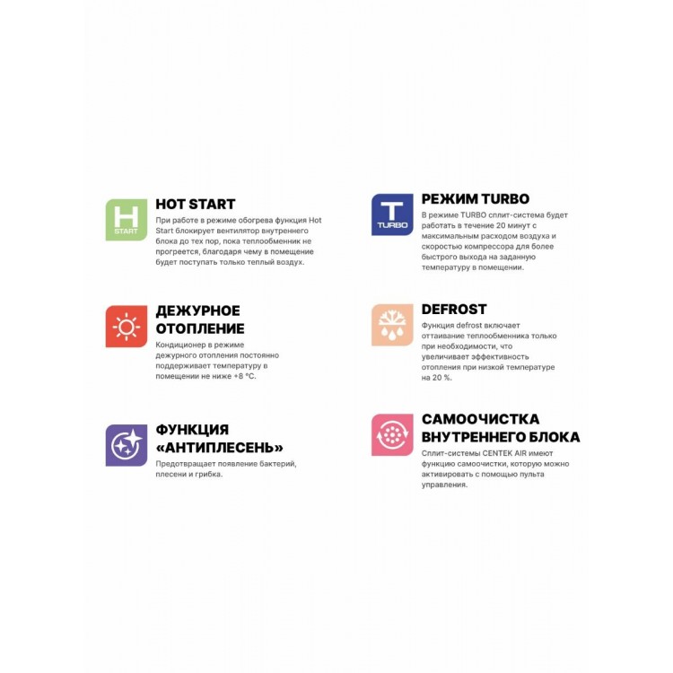 | Дополнительные режимы | Авто, вентиляция, ночной, турбо |