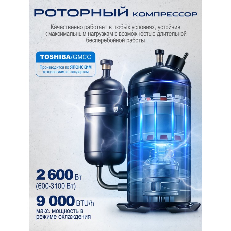 - Класс энергопотребления: А (охлаждение и обогрев).