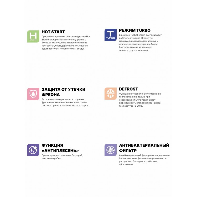 | Дополнительные режимы | Авто, вентиляция, ночной, турбо |