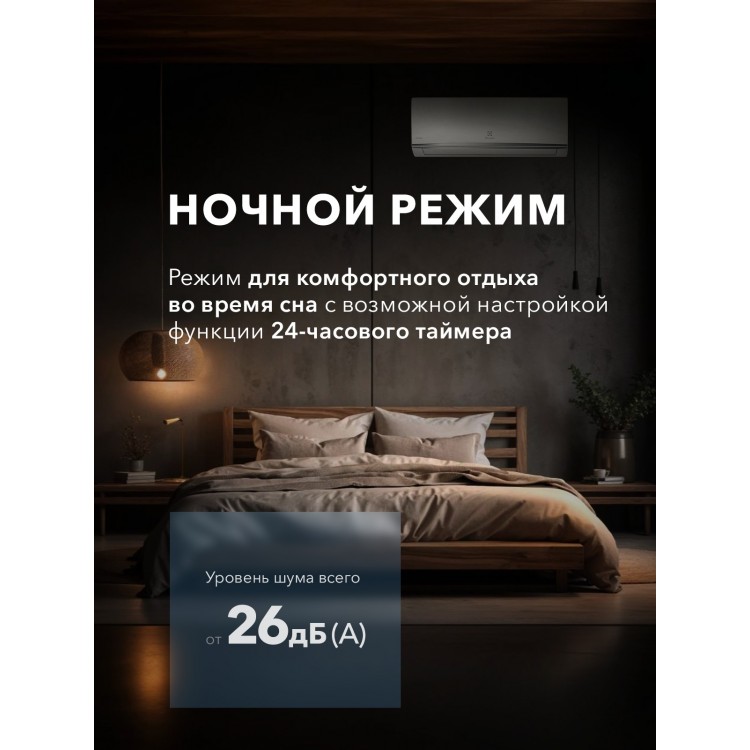 * Многофункциональность. Сплит-система Electrolux Smartline поддерживает различные режимы работы: обогрев, охлаждение, осушение. Дополнительные режимы (авто, вентиляция, ночной) позволяют настроить работу устройства под ваши потребности.