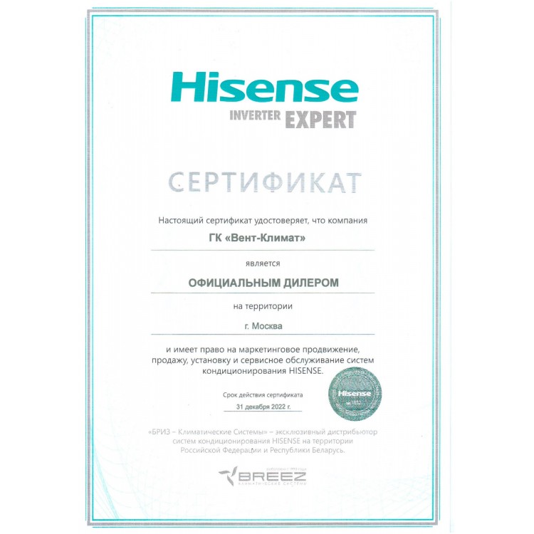 | Дополнительная информация | Для управления с помощью смартфона необходимо приобрести и установить модуль Wi-Fi Hisense AEH-W4G1 |