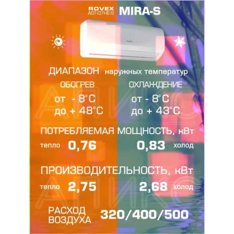 | Название | Сплит-система 9 ROVEX MIRA AST-09HE South бытовой кондиционер, до 27 м2 |