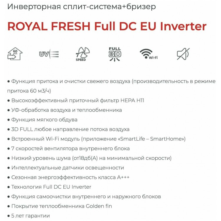 | Линейка | ROYAL FRESH FULL DC EU Inverter |