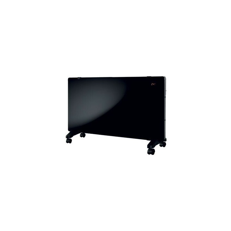 Устраивает, что пульт ДУ был в комплекте, он полностью соответствует панели управления на конвекторе. Установили на стене в гостиной. Используя пульт, устанавливаю температуру и режимы, сразу устанавливаю таймер на отключение в ночное время. Греет приятным теплом. Лицевая панель притягивает взгляд и выполнена из ударопрочного стекла.