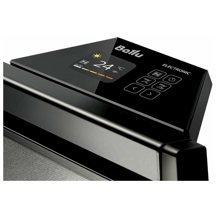 Лицевая панель из черного стекла выглядит очень стильно и современно. Электронный термостат позволяет точно устанавливать температуру. Потом он ее поддерживает. Есть таймер на отключение, что очень удобно, можно не беспокоиться, что забудешь выключить на ночь. Он абсолютно безопасен, жжет кислород и есть защита от перегрева.