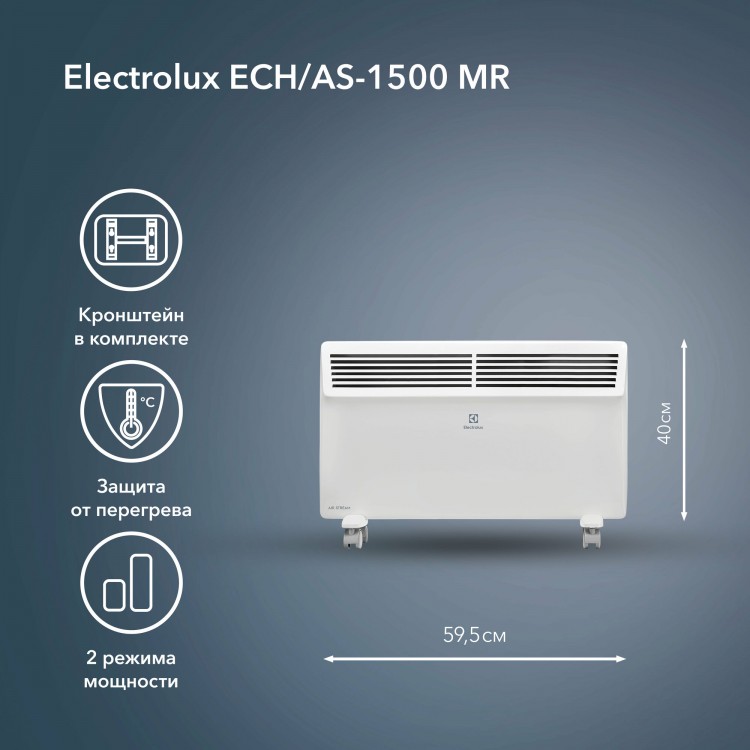 Покупал той осенью. Задумался о дополнительном обогреве в квартире когда отопление еще не включили. Этот конвектор приглянулся своей простотой и ценой вполне адекватной. Управление чисто механическое, два режима мощности, больше и не требуется. Понравилось, что в комплекте есть и шасси, и кронштейны для крепления на стену. Сначала хотел на шасси поставить, но потом подумал, что места немного, лучше на стену повесить. Так и сделал, не мешается и тепло дает нормально. Защита от перегрева, кстати тоже есть, что немаловажно.