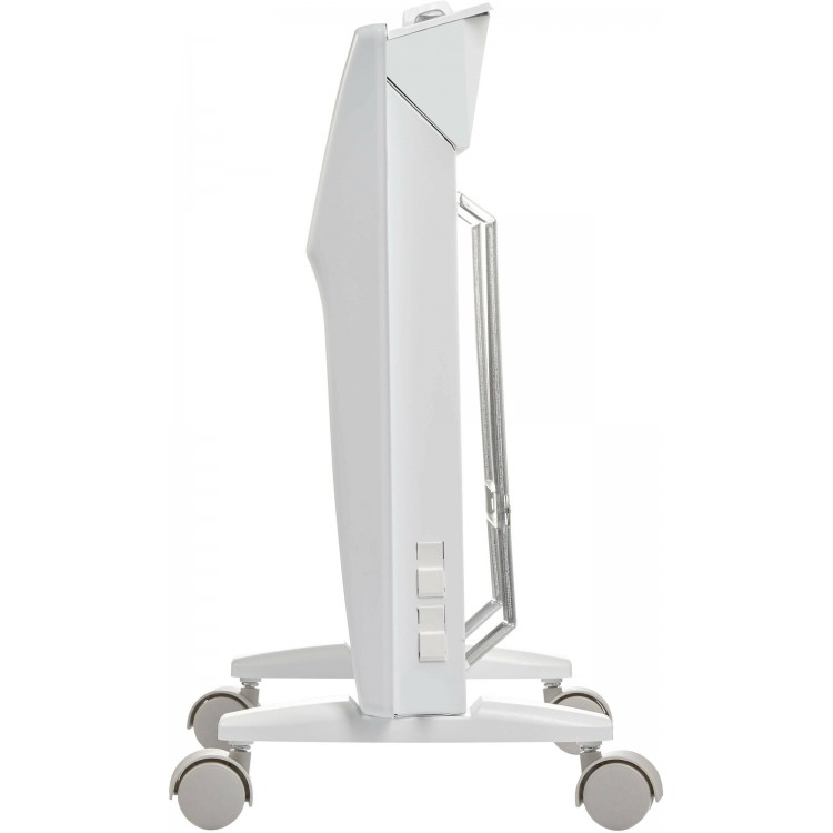 Поставил его на колесики и спокойно катаю из одной комнаты в другую. Никаких тяжестей, даже одной рукой катится. Площадь небольшая, прогревает достойно. Работает стабильно, без всяких фокусов. Звук от него отсутствует полностью, даже в тишине не мешает. Переключение режимов плавное, не клинит. Механика простая, как надо. Корпус не воняет, материалы нормальные. Внешне не броский, не портит интерьер. Кабель не жёсткий, гнется как надо. Пыль не летит вверх, значит не перегревает воздух. Можно спокойно спать в комнате. Не надо сидеть над ним, греет всё помещение.