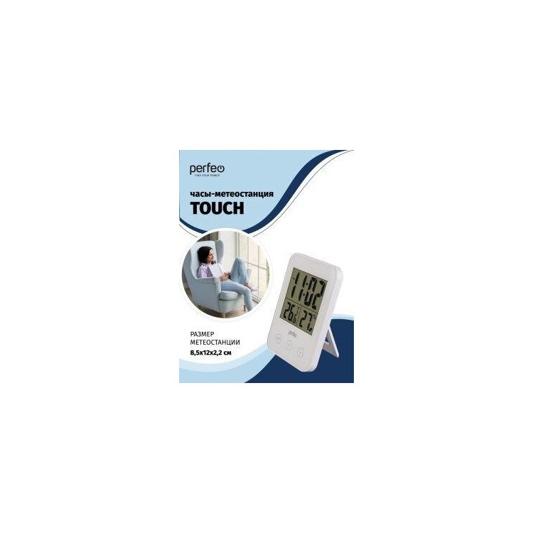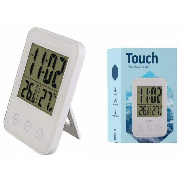 Perfeo Часы-метеостанция "Touch", белый, (PF-S681) время, температура, влажность