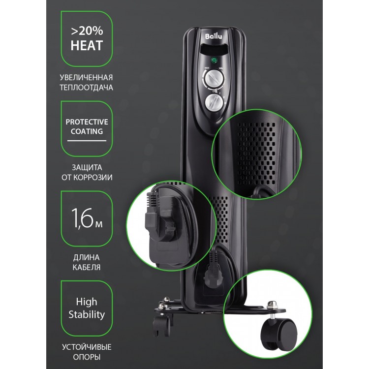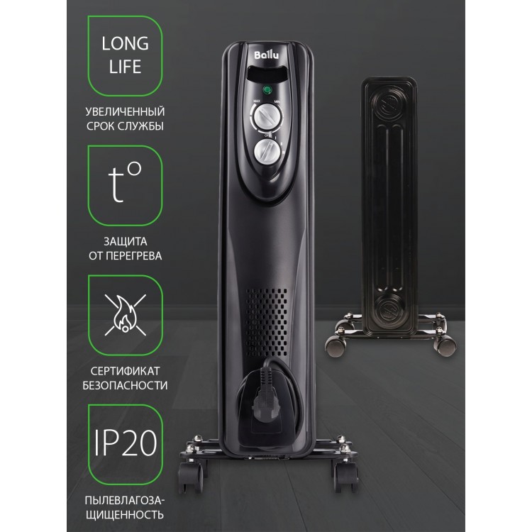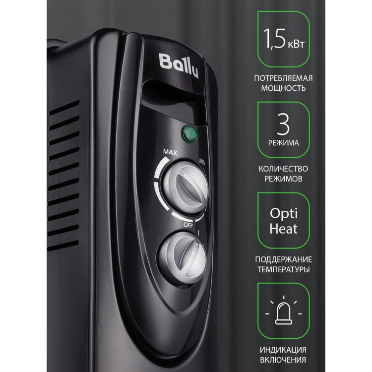 2. Безопасность и надёжность. Ballu Classic BOH/CL-07BRN оснащён термостатом, который позволяет поддерживать постоянную температуру, и системой отключения при перегреве, что делает его использование максимально безопасным.
