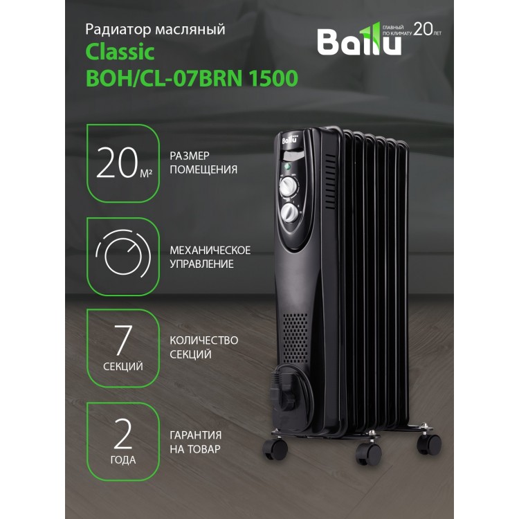 Ищете надёжный и эффективный способ создать комфортную температуру в вашем доме или офисе? Масляный радиатор Ballu Classic BOH/CL-07BRN — это именно то, что вам нужно!
