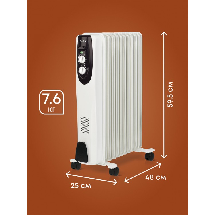 Покупал в дополнение в детскую комнату. Понравилась колесная база, широкая и устойчивая, не перевернется, удобно перемещать по надобности. Нормальная длина шнура, когда не пользуемся радиатором откладываем в отсек. Грет хорошо, остывает и тепло держится долго. Кислород не сушится дома. Три режима работы.