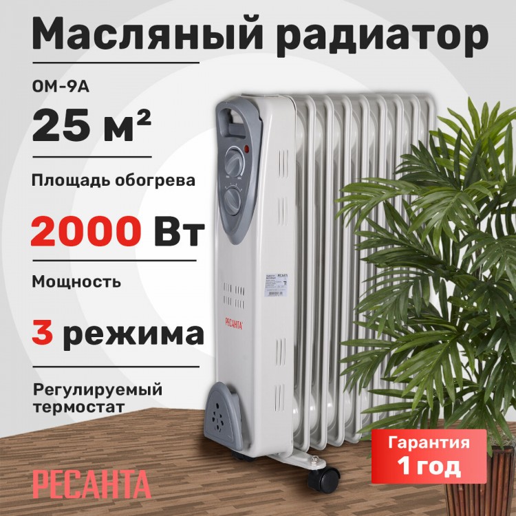| Название | Радиатор масляный, Ресанта ОМ-9А, 2000 Вт, 9 секций, термостат |