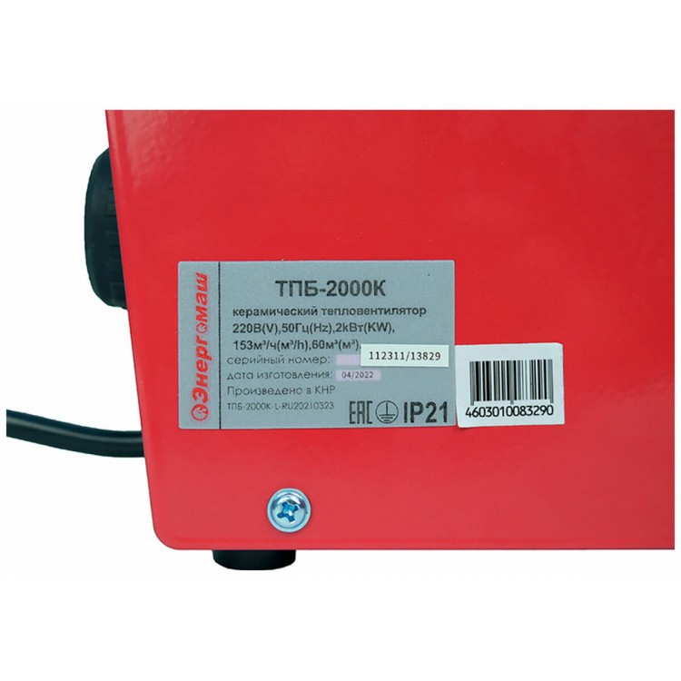 | Название | Тепловентилятор керамический ТПБ-2000К, 2кВт/1кВт, термостат, защита от перегрева |