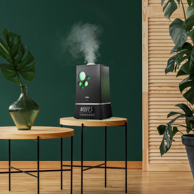 Приобрел для офиса, выбрал в черном тоне – отлично вписался в интерьер. Имеется таймер и гигрометр, что позволяет автоматически контролировать уровень влажности. Управление довольно простое и удобное с помощью сенсорных кнопок. Присутствуют три скорости увлажнения.