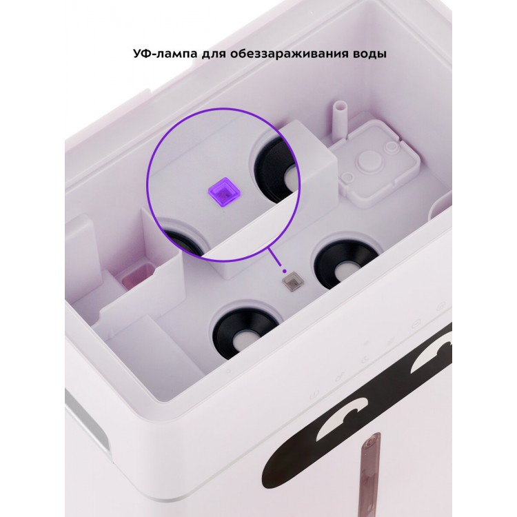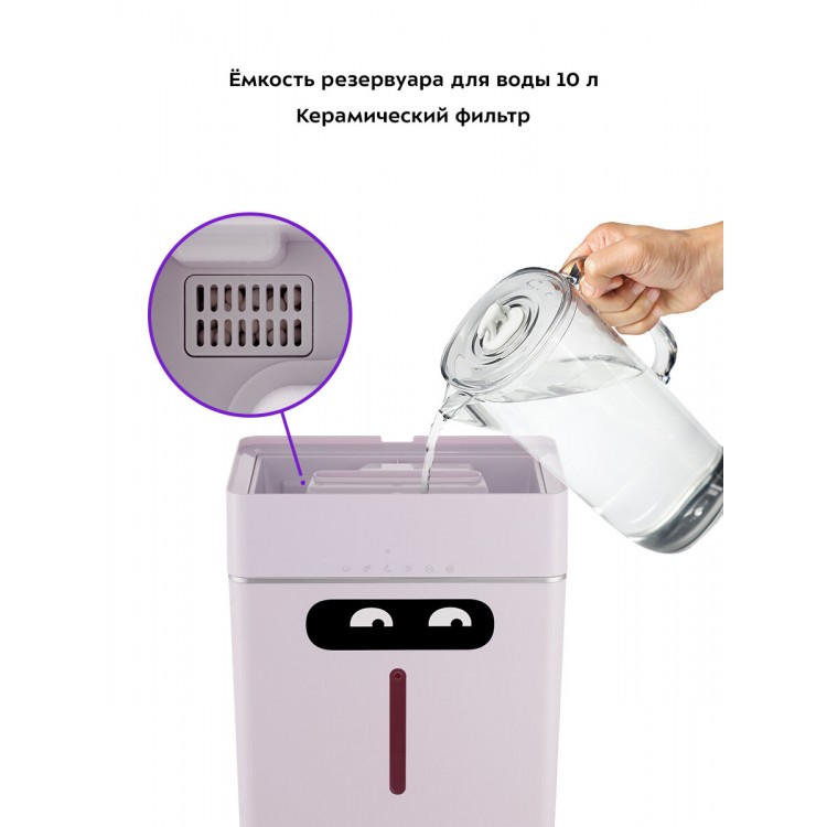 Вместительный резервуар для воды, полного залива хватает почти на целый день непрерывной работы. Быстро поднимает влажность в квартире. Симпатичный дизайн