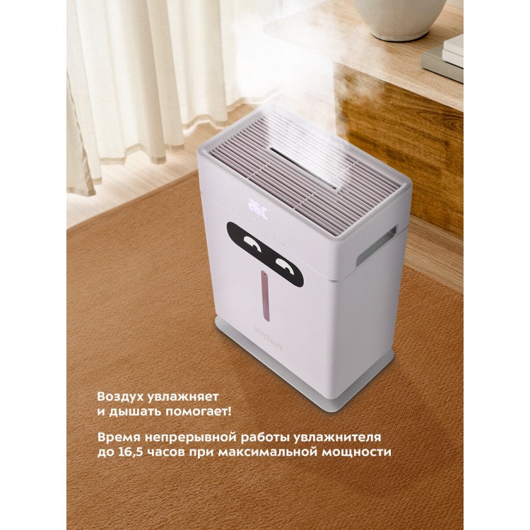 Я приобрел увлажнитель воздуха Kitfort КТ-2881 несколько дней назад и хочу поделиться своими впечатлениями. Прежде всего, мне нравится, как он работает в моей просторной гостиной площадью около 55 квадратных метров. Устройство с легкостью увлажняет весь объем помещения, создавая приятный и комфортный микроклимат. Даже в самые сухие дни, когда работают батареи отопления, воздух остается свежим и увлажненным.