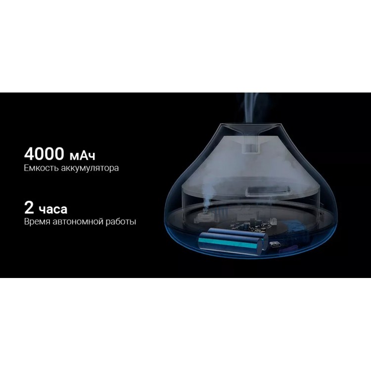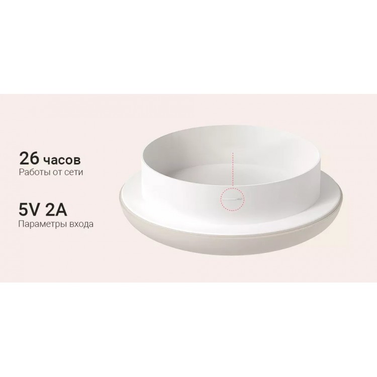 В комплект поставки входит сам увлажнитель, техническая документация и дополнительная информация о батарее, которая позволяет работать устройству до 2,5 часов без подключения к сети.