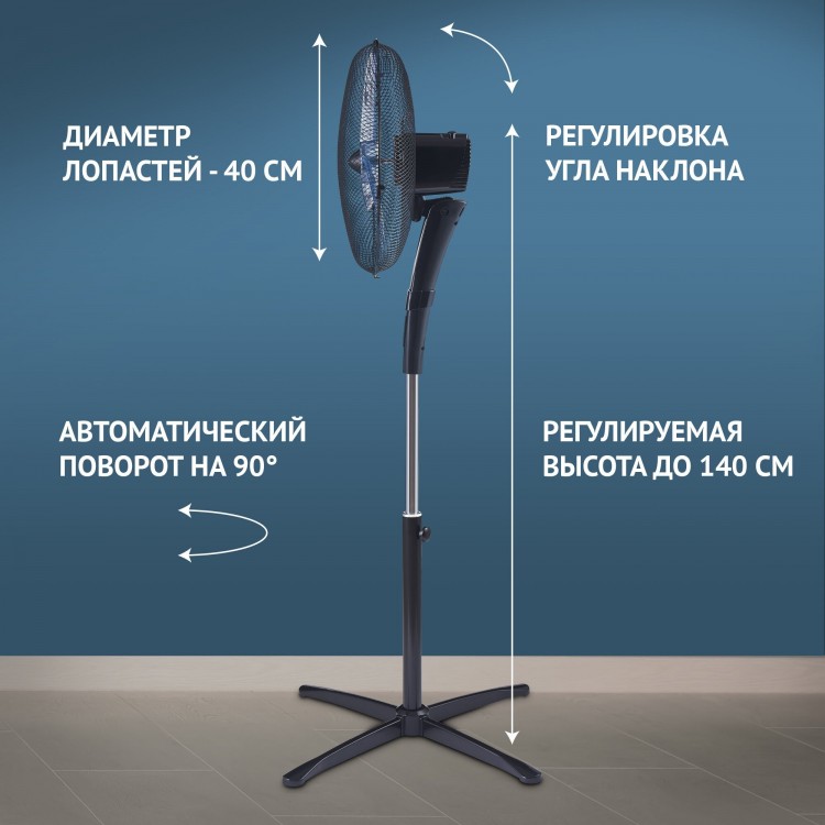 Легкая сборка. Все необходимые функции есть. Несколько скоростей, голова поворотная, по высоте тоже регулируется. Даже пульт есть.