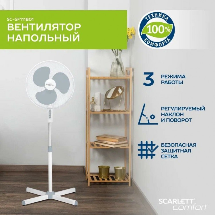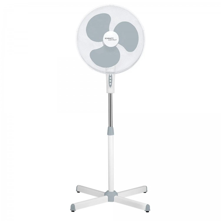 Выбрали себе к лету напольный вентилятор в бело-сером цвете. Основание у вентилятора крестовина, она надежнее круглого, стоит на нем устойчиво, даже если установить максимальную высоту. Он с тремя скоростными режимами. На высокой скорости можно включать, когда детей нет рядом. Угол наклона и горизонтальное вращение регулируются.