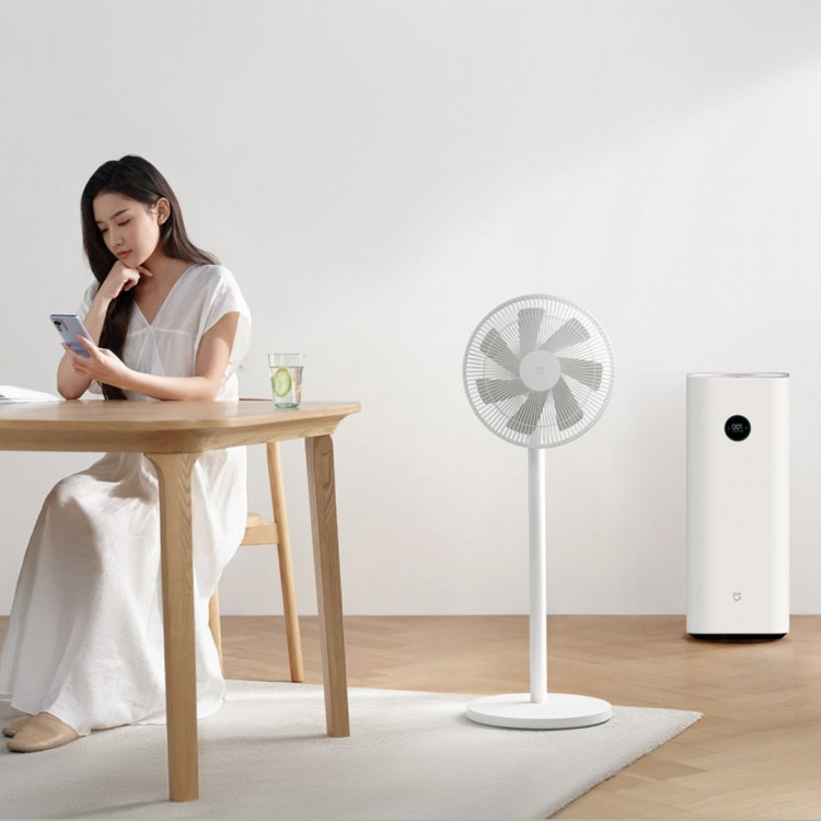 У вентилятора четыре скорости, его обдувающая часть поворачивается на 40 градусов по вертикали. Управление электронное, возможно включение в систему умного дома через приложение Mi Home. Доступна 100-ступенчатая регулировка интенсивности подачи воздуха.