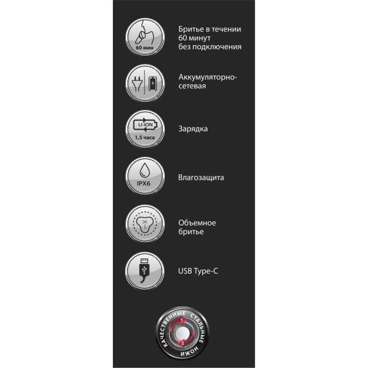 | Особенности | питание от USB, триммер, Магнитное крепление бреющей головки |