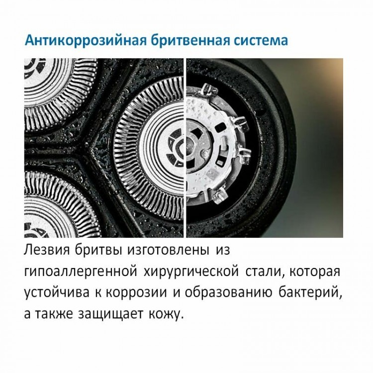 - Водонепроницаемый корпус позволяет использовать бритву как для сухого, так и для влажного бритья.