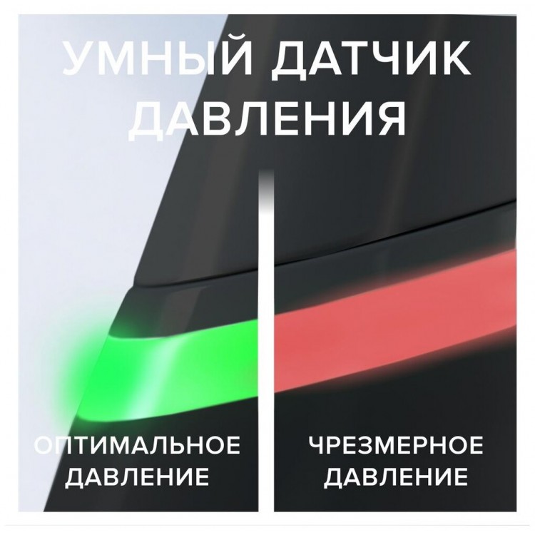 - Датчик нажима на зуб помогает контролировать силу чистки.