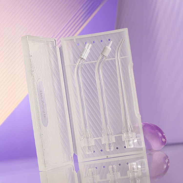В комплект входят три сменные насадки: стандартная, пародонтальная и ортодонтическая (для брекетов). Также в комплекте идёт дорожная сумка, кабель USB Type-C, инструкция по эксплуатации и гарантийный талон.