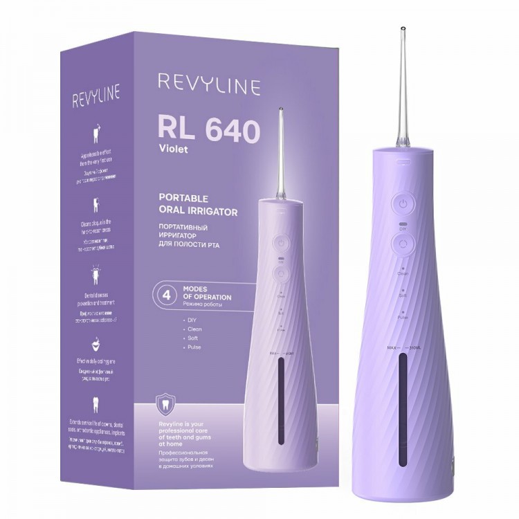 | Название | Ирригатор Revyline RL640, портативный, 4 насадки, 3 режима работы, фиолетовый |
