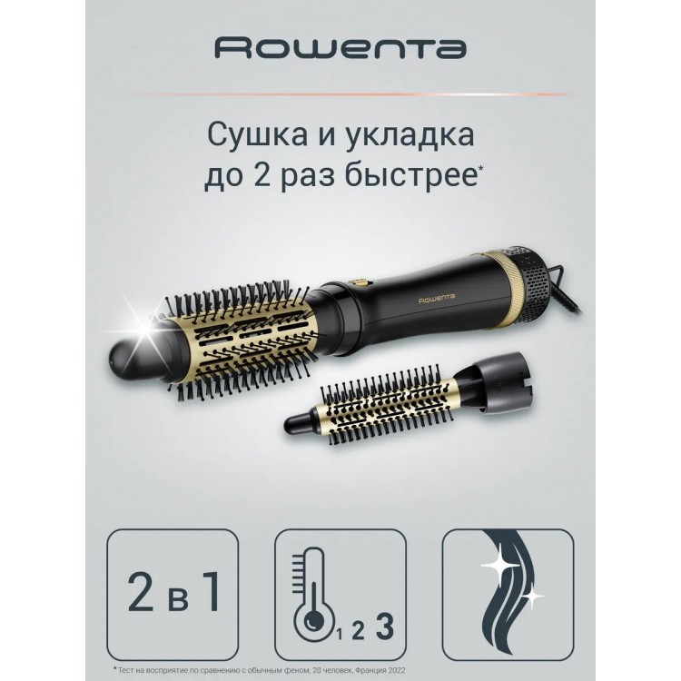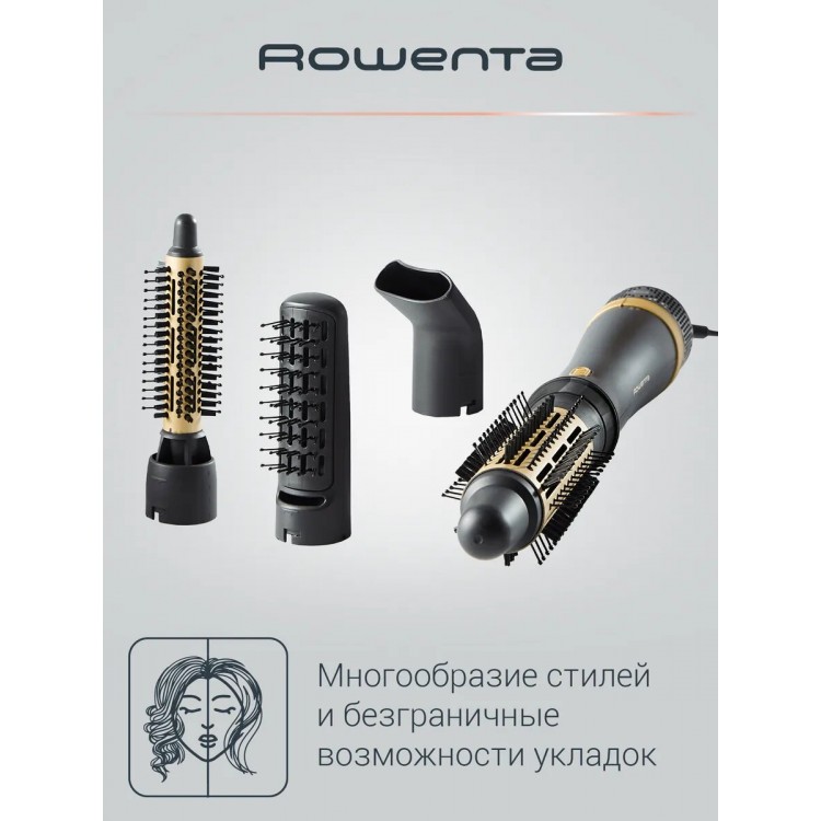 | Название | Фен-щетка для волос 3в1 Rowenta Express Style CF6330F0 с концентратором, 2 круглыми щетками и 6 режимами, черная/золотая |