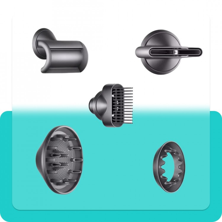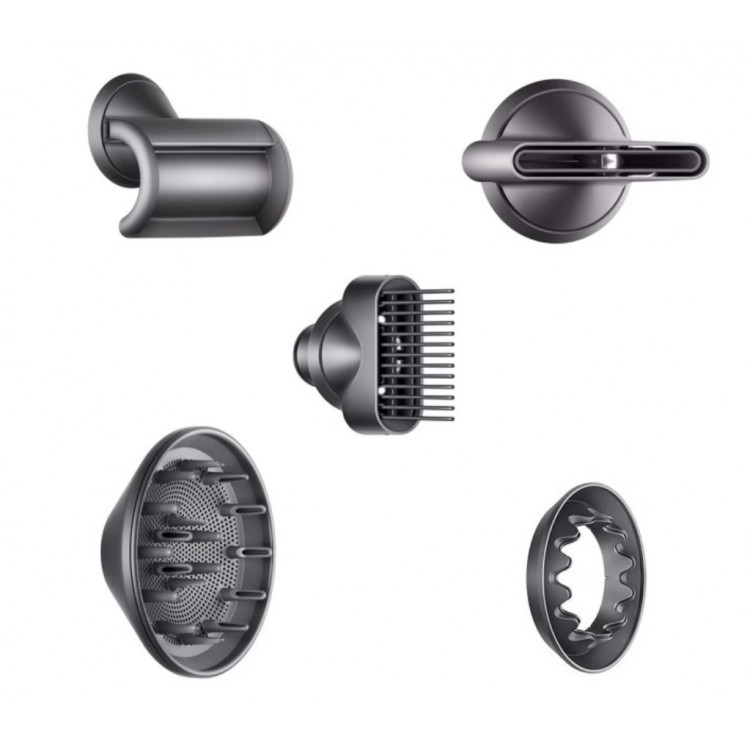 | Дополнительная информация | Интеллектуальная система контроля температуры исходящего воздуха; мощный двигатель с цифровым управлением Dyson V9, магнитные насадки для укладки; температура воздуха от 28°C до 100°C; скорость воздушного потока: 41 лит./сек.; объем потока воздуха без насадок: 13.3 л/с; температурные режимы: 28, 60, 80, 100°C; максимальный уровень шума: 77 дБ |