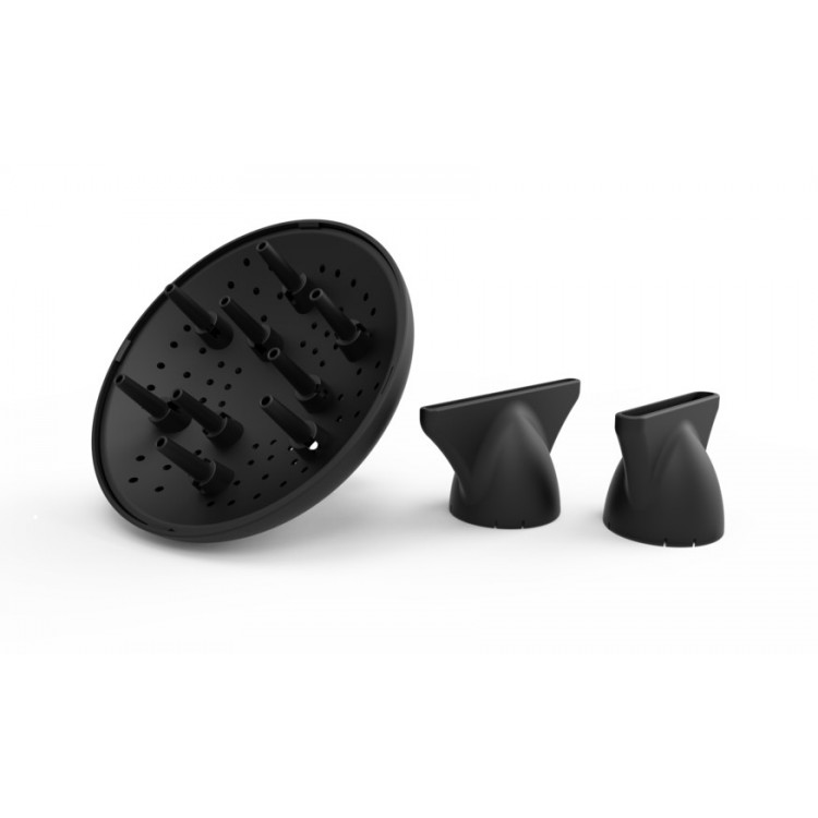 В комплект входят концентратор и диффузор, которые позволяют создавать различные укладки. Петля для подвешивания и съёмный фильтр делают хранение и использование фена максимально удобным.