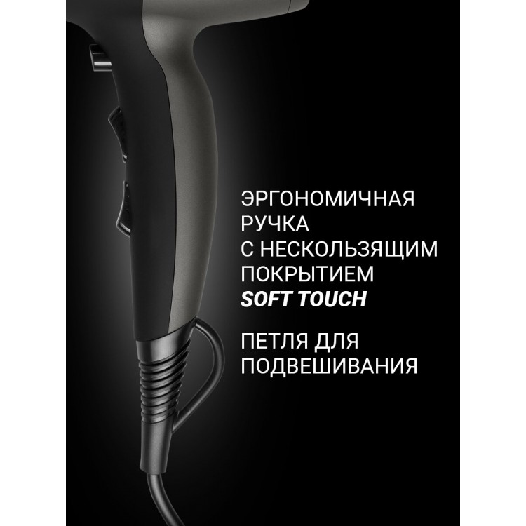 Профессиональный фен мощностью 2200 Вт с 6 режимами нагрева и 2 скоростями.